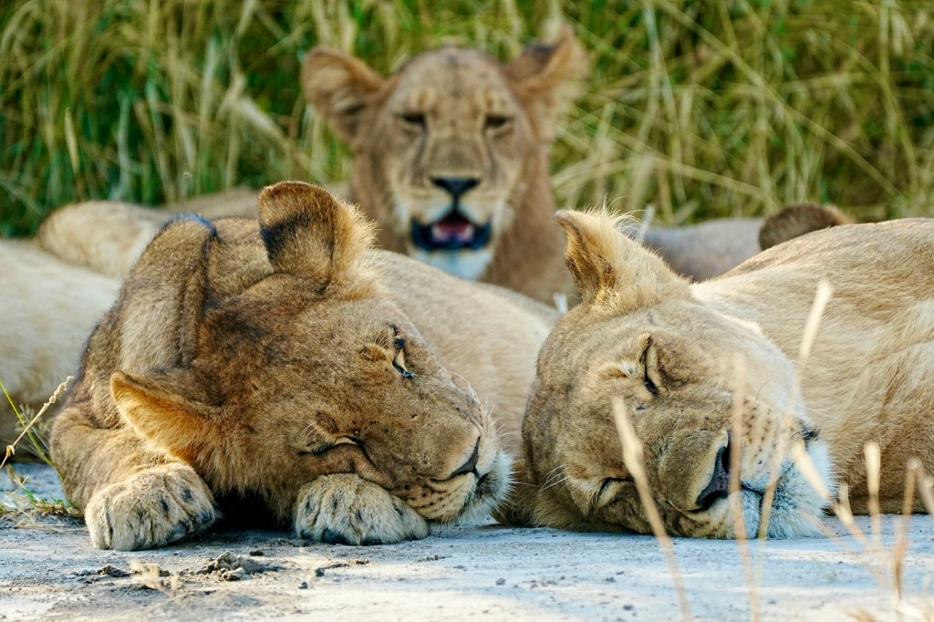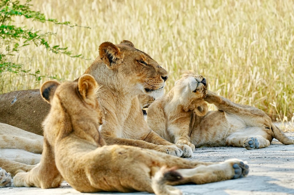 Our guide, Fannah, finds a pride of lions that look full and contented. He observes vultures in the distance and he heads that way to see if we can find their kill and maybe the male lion. We soon find the remains of a baby giraffe.