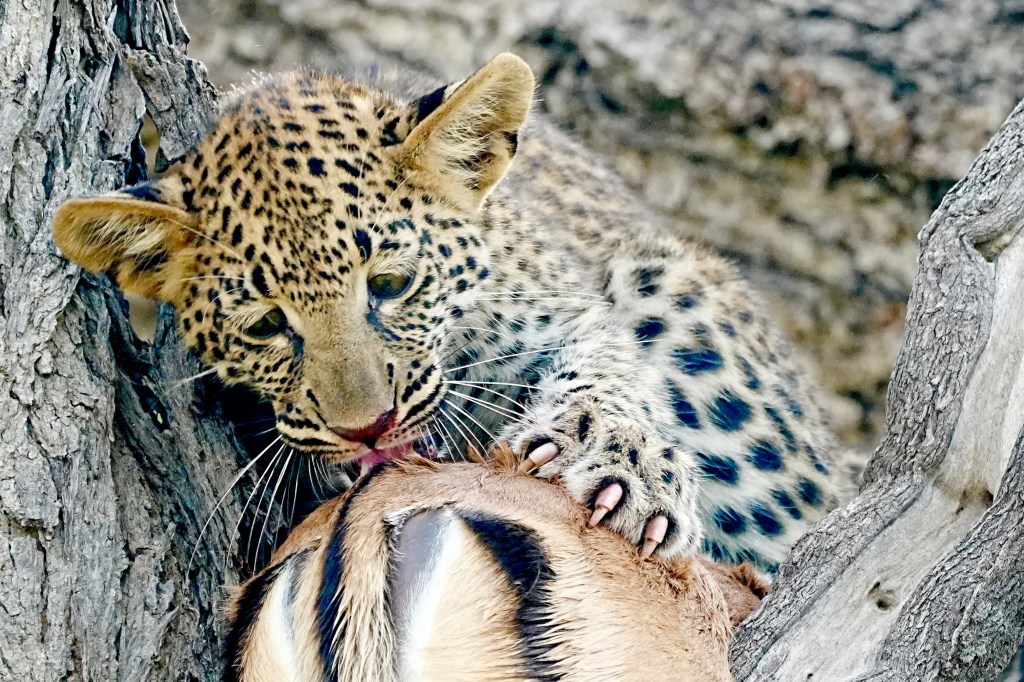 This morning we drive to the water of the delta to have our ride in the traditional boat of the delta called a mokoro. But, on our way we have another afternoon drive amazing sighting of a mother leopard and her two cubs.