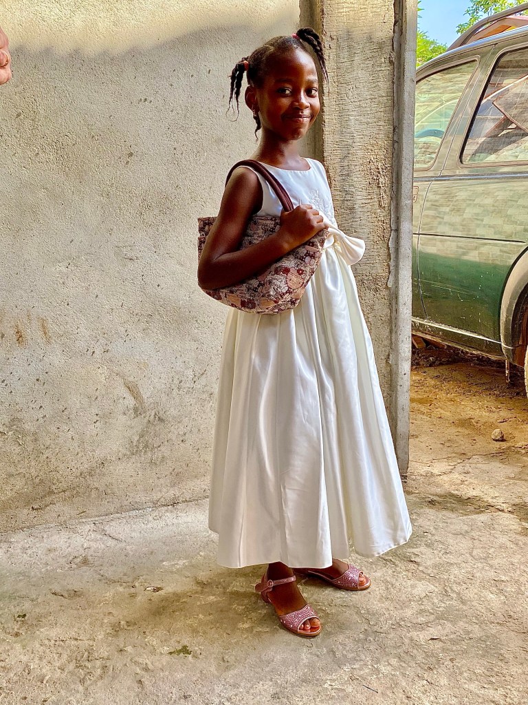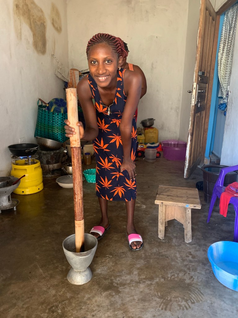 Our next visit was to Alimatu’s place. She lives with her mother and siblings. She surprised us with beautiful African clothing she had made for us.