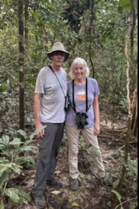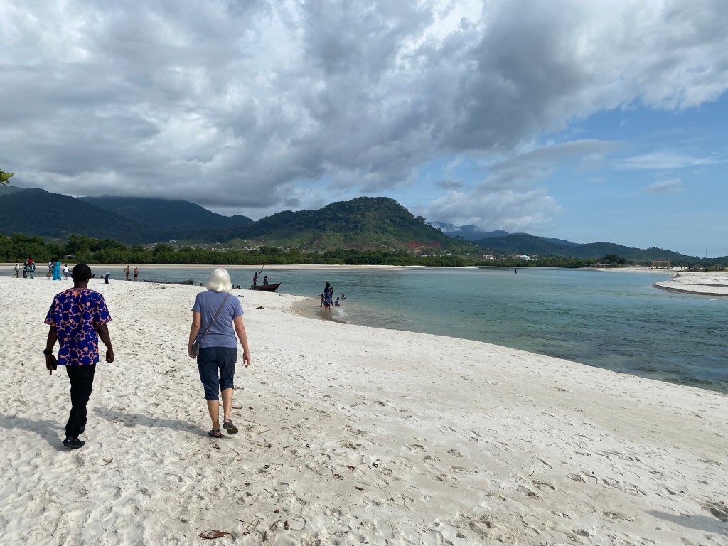 A group of six British travelers have joined us at the island. They all work for the British government here in Sierra Leone. One couple joined us for our river boat cruise on the Moa River. They are avid birders and he gets very excited when the boatman spots a Rufus Fishing Owl. It was a delightful ride and many different species of birds seen.