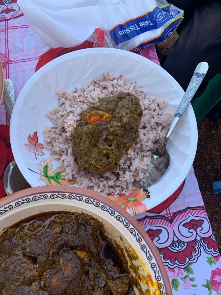 We end the evening with rice and cassava leaves. You can’t get more African than that!