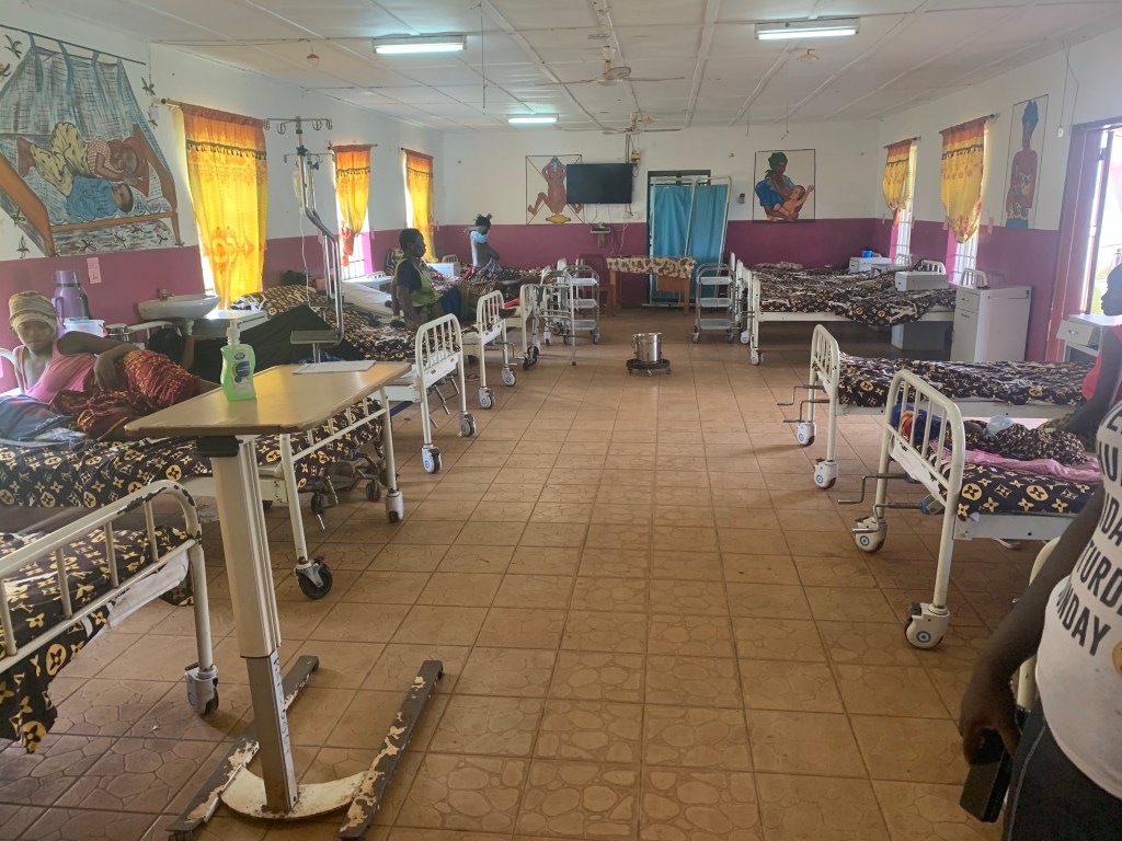 We are back on the hospital grounds for a tour of the hospital. The wards are one room with around 18 beds. The equipment and resources are old, but they seem to make do. The maternity ward was busy with mothers and babies and an ambulance bringing more.