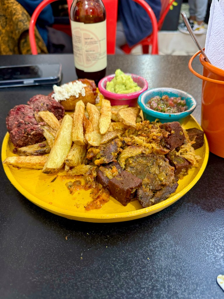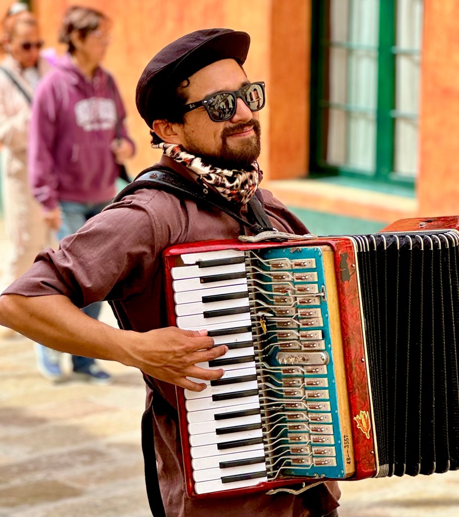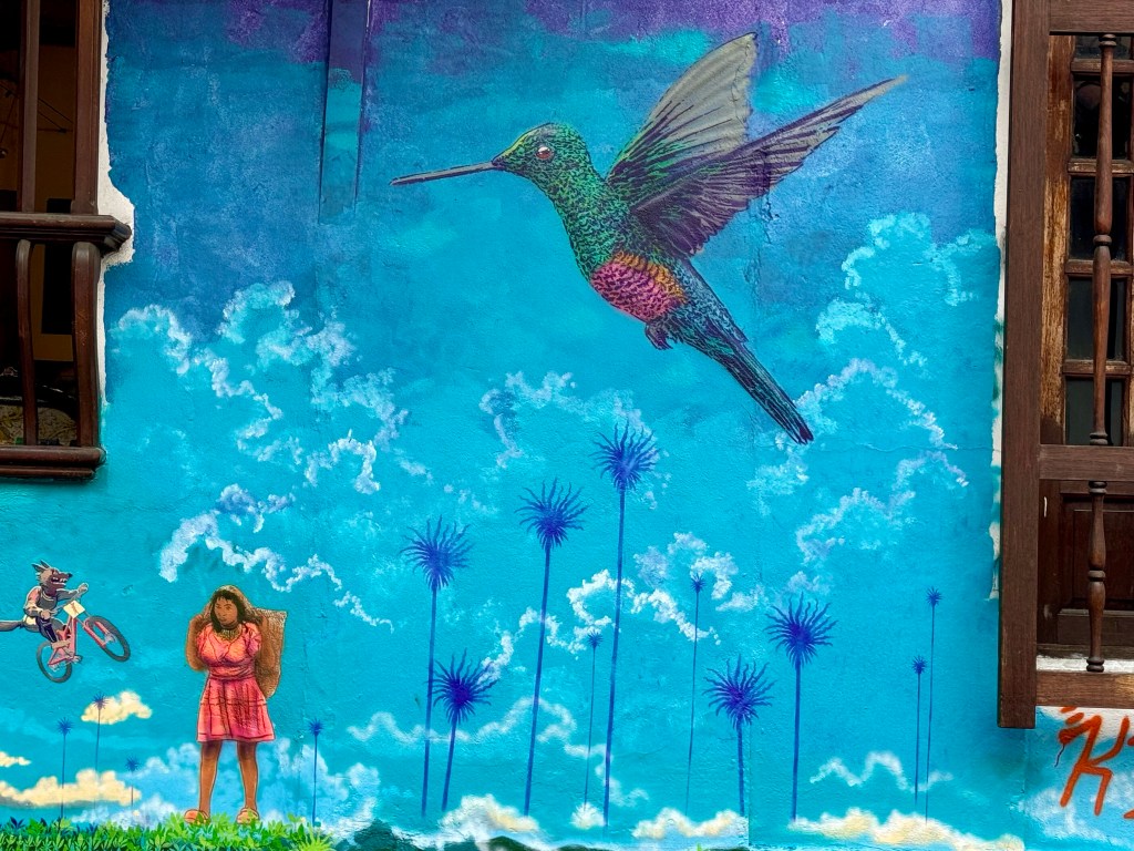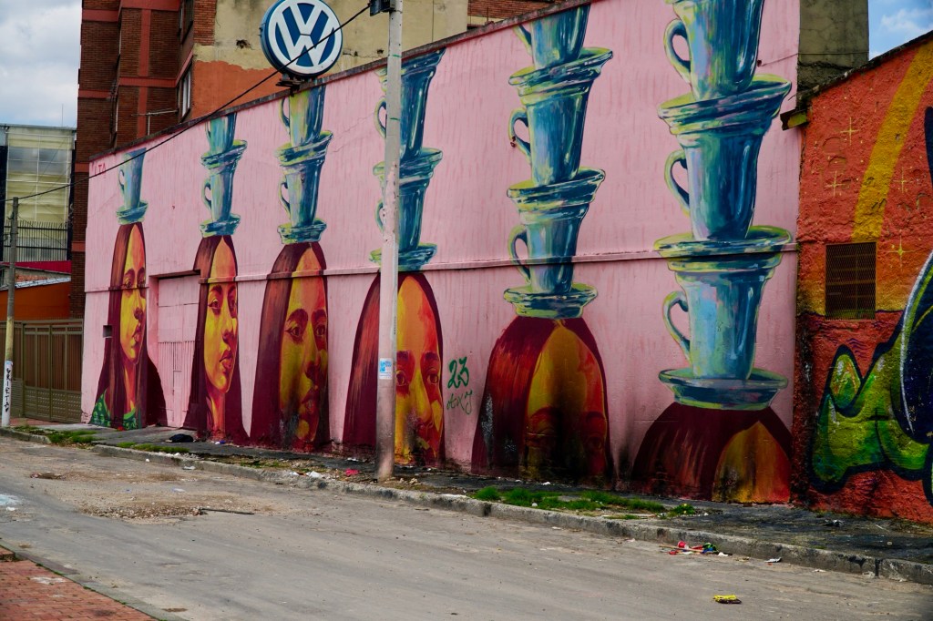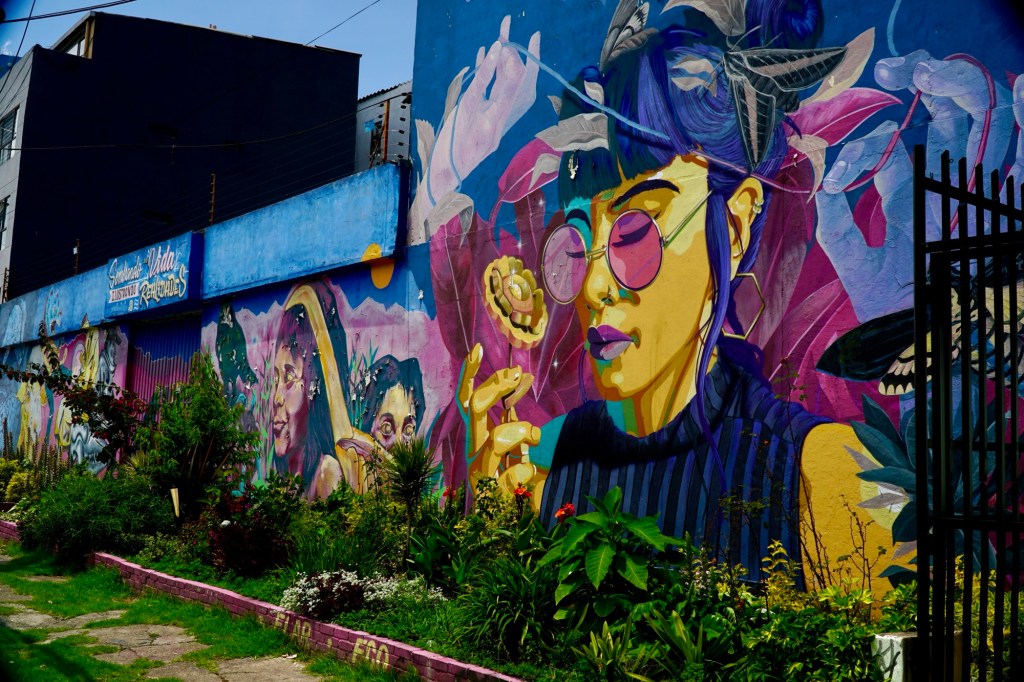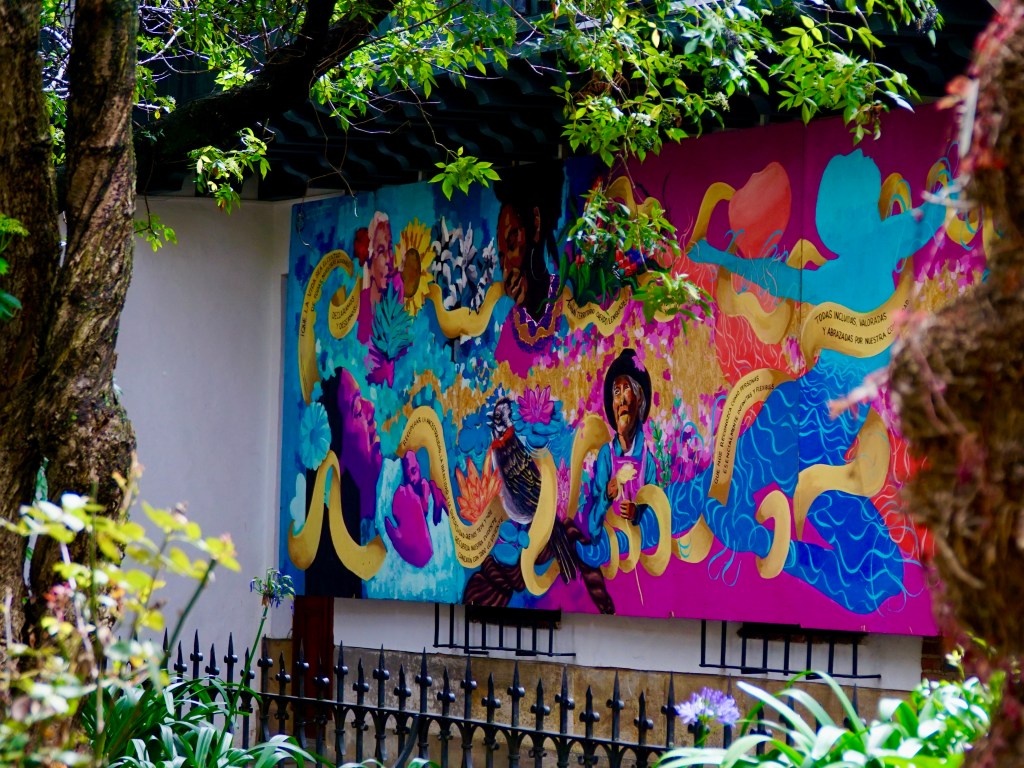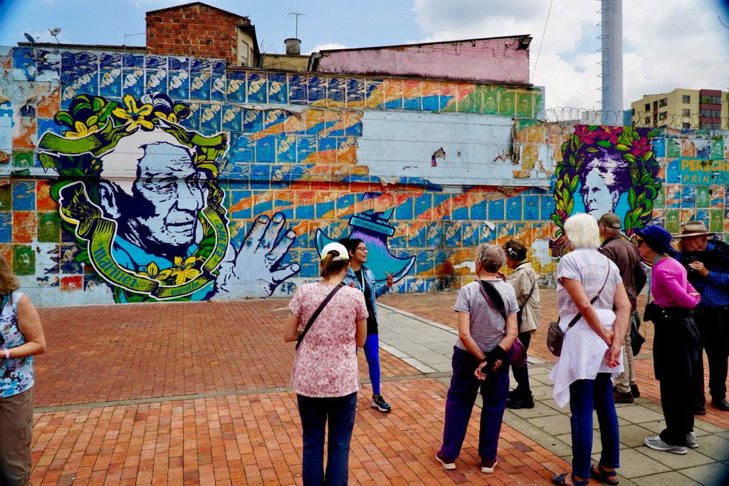 We took a walk around our hotel’s historic La Candelaria neighborhood. Its architecture is from the Spanish Colonial era. We delighted in the street art on the buildings.