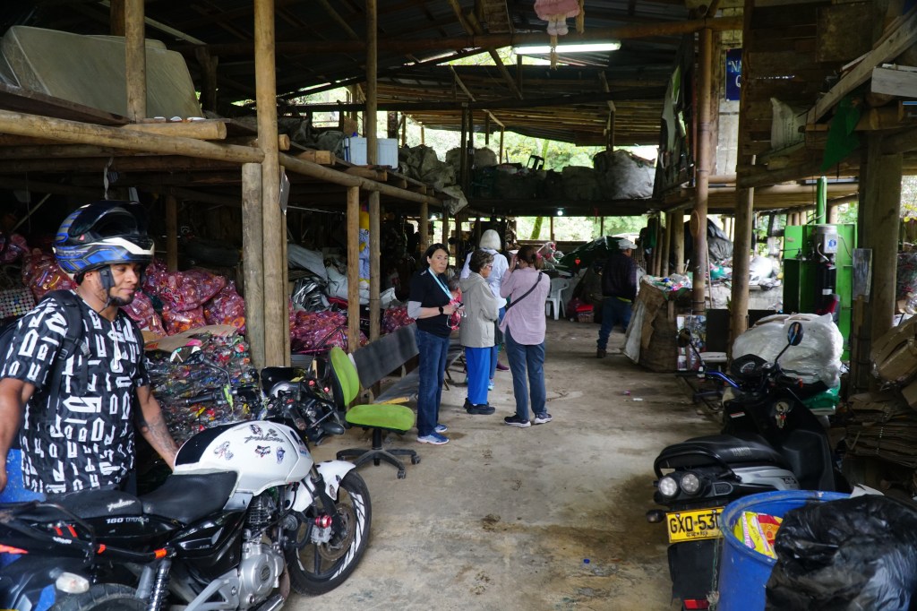We visited Comuna 8 this morning , a neighborhood in the hills of Medellín. Formerly it was under the control of the paramilitaries. A former member of the paramilitary group began a project to help bring this area together. He along with others began a recycling business. The Grand Circle Foundation, the parent company of Overseas Adventure Travel, is helping support the project.