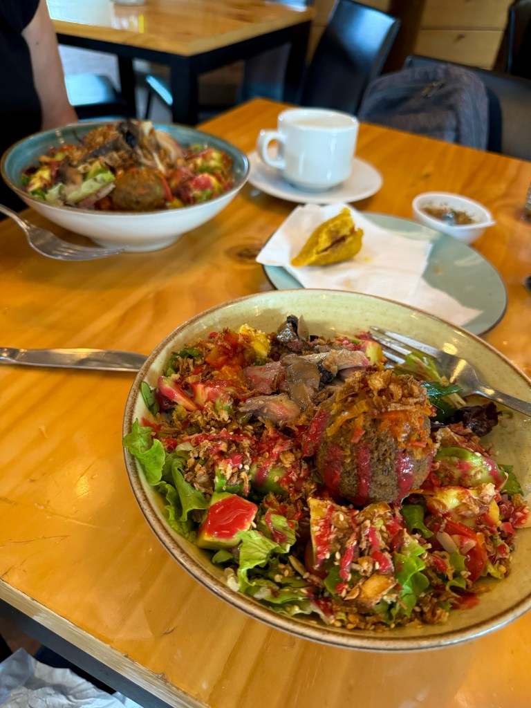 We ate lunch at the cafe in the gardens. We had a tasty vegan salad. Later for dinner we found a cute little vegan restaurant called Maria Candela.